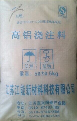高鋁澆注料是以高鋁礬土骨料65-70%、高鋁水泥7-10%,硅灰和氧化鋁粉5-8%,鋁礬土細粉15-24%,減水劑0.2%及緩凝劑或促凝劑按一定比率合成。具有較高的機械強度和良好的抗熱震、抗磨蝕等性能,主要用于電站、鍋爐、熔鑄爐、均熱爐、熱處理爐、高爐熱風爐、加熱爐、感應爐和陶瓷窯爐等爐襯不同部位選用。