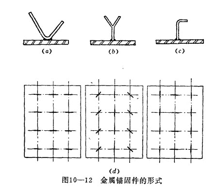 爐墻采用金屬錨固件,其形式一般有V、Y和廠形等多種(如下圖a、b、c)。布置情況(如下圖d)