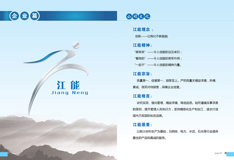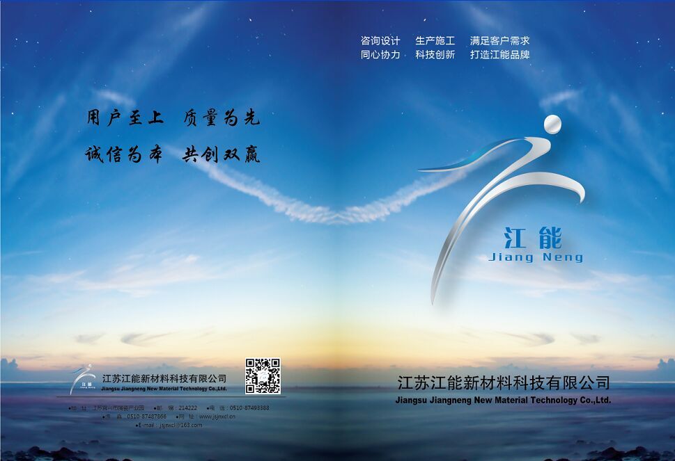 為滿足拓展外部市場的需要,配合江蘇江能新材料科技有限公司網站,加大企業宣傳力度,我司編印了企業宣傳冊。宣傳冊分為企業篇、榮譽篇、產品篇三個篇章,全面介紹了企業文化、企業資質榮譽、企業實力、專利產品和工程業績,便于客戶更直觀更全面地了解公司。
