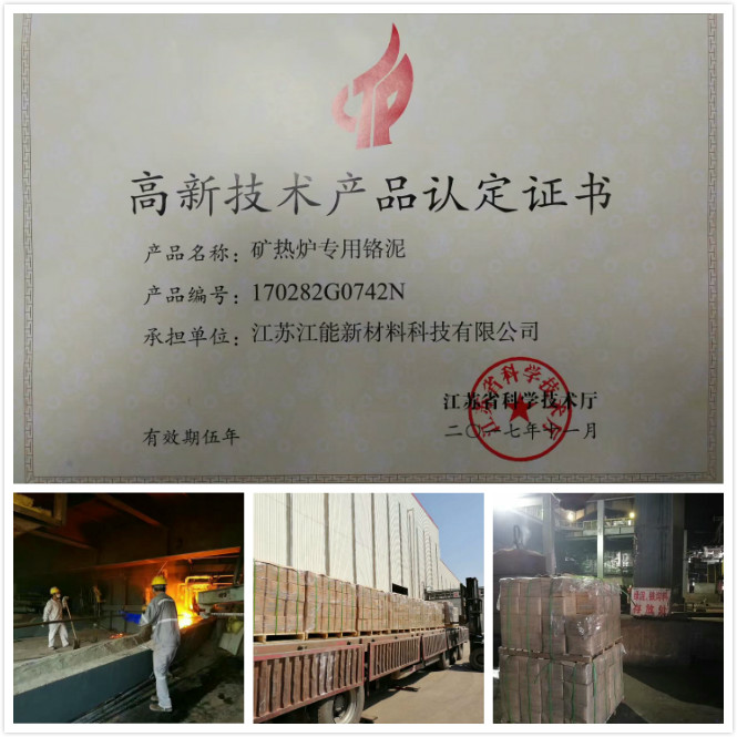 江能礦熱爐專用鉻泥自2015年研發(fā)成功并投放市場,經(jīng)過國內(nèi)多家大型鐵合金冶煉企業(yè)使用,在改善出鐵口燒結(jié)性能和抗沖刷能力、保證鐵口深度、開口堵口容易、環(huán)保無煙氣、降低勞動(dòng)強(qiáng)度等諸多方面性能顯著,獲得了廣泛認(rèn)可。
