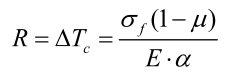 式中R’=R·λ稱為抗熱震參數。適用于當材料的內部和外部與環境的溫度差相接近并形成穩定溫度分布時,用以比較材料的抗熱震性。
