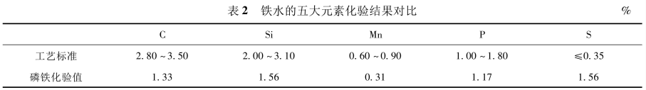 追根溯源,爐齡短是因?yàn)闇囟雀撸瑴囟雀呤且驗(yàn)殍F水流動(dòng)性差,因此對(duì)影響鐵水流動(dòng)性的五大元素(C、Si、Mn、P、S)進(jìn)行分析,其化驗(yàn)結(jié)果見(jiàn)表2。由表2可知,能提高鐵水流動(dòng)性的磷元素含量并不低,而能降低流動(dòng)性的硫元素含量則超出標(biāo)準(zhǔn)4.5倍。