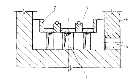 圖4 貫通式熱處理爐爐底的砌筑1-煙道;2-擋板磚;3-導軌磚;4-爐墻;5-噴嘴
