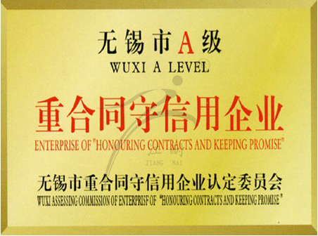無錫市重合同守信用企業證書